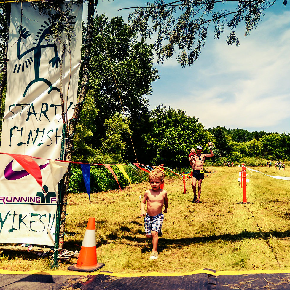 It was disheartening and yes, disappointing, but I honestly just wanted to be done running.  After reaching the top of the ski hill and hobbling through some more technical terrain I started to descend until stopped by shooting hamstring cramping … while stretching I violently cursed the day I ever started running, swore I’d NEVER run again, and continued down the grassy hill.  A short ~30 seconds later I loved what I was doing again, was sad the journey was almost done, and thanked Jesus for the opportunity to run and worship Him in such a way.  A few more glances behind me assured me I could enjoy the run in and capture 2nd … and that I did while I entered the finish clearing and carried my baby boy while running along side my toddler in the final straight away.  Every other race I’ve ever entered the last straight away is a mad sprint to the finish … trying to set PRs and out-kick whoever is ahead of you.  This was different.  I slowed … I enjoyed … I took it in slowing to a walk and clutching my 7 month old as my 3-year-old did NOT slow down and sprinted in ahead of us.  The cheers grew louder as he, my first-born with his blonde curly hair, was striving closer to the finish line … one of my favorite running memories I’ll never forget.  I couldn’t help but cheer him on myself watching from behind.  Because when it’s all said and done, I can’t do anything without the Lord who gave me legs and my family who allows me to use them.  They sacrifice, they cheer, and they love.