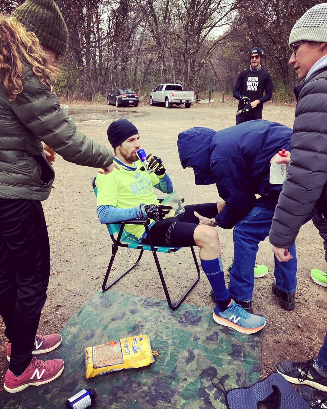 One last thought (see last pic)… being driven away from an ultra “finish line” bundled in blankets will sometimes resemble FINALLY ESCAPING THE PSYC WARD!
